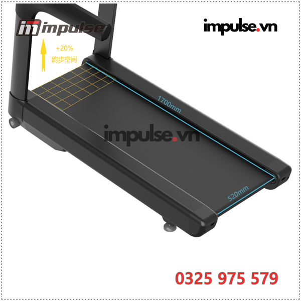 Nhờ thiết kế động cơ đặt ở phía dưới, băng tải chạy bộ trải dài liền mạch trên toàn bộ bề mặt máy, giúp tối ưu hóa đáng kể việc sử dụng băng tải. Cách tiếp cận sáng tạo này giúp tăng diện tích chạy lên 20%, tạo ra khu vực rộng rãi 520mm × 1700mm cho trải nghiệm chạy bộ thoải mái và không bị cản trở.